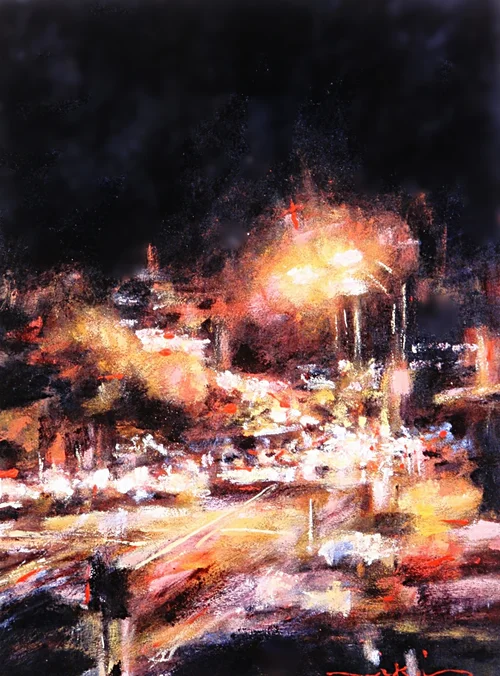 Bright Lights, Acrylic on paper, 5"x7", 2002