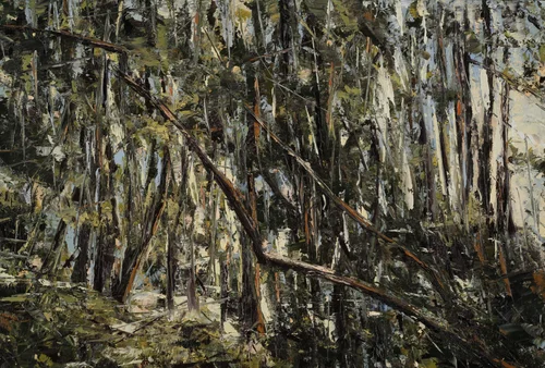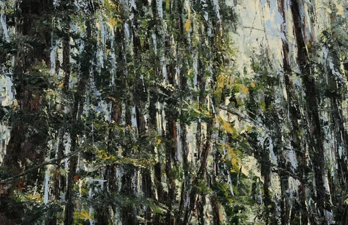Soft Light Thru Branches, Oil on panel, 12"x24", 2017