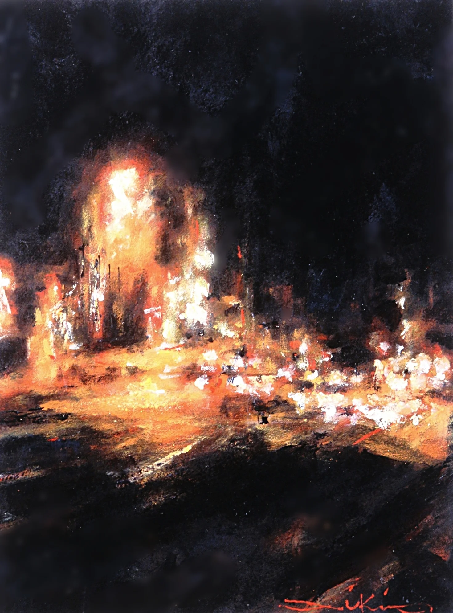 Quiet Fireworks,  Acrylic on paper, 7"x5", 2002