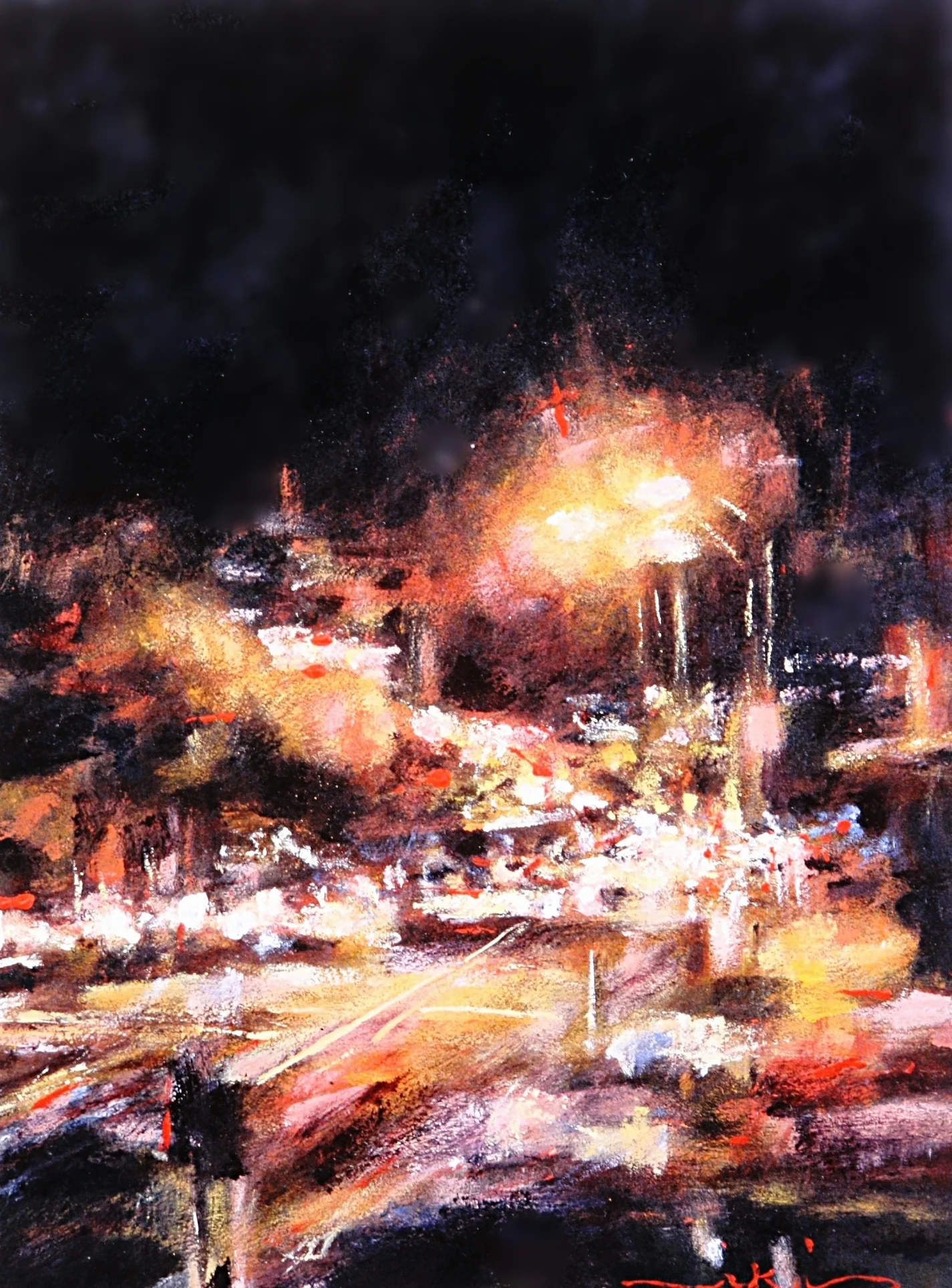 Bright Lights,  Acrylic on paper, 5"x7", 2002